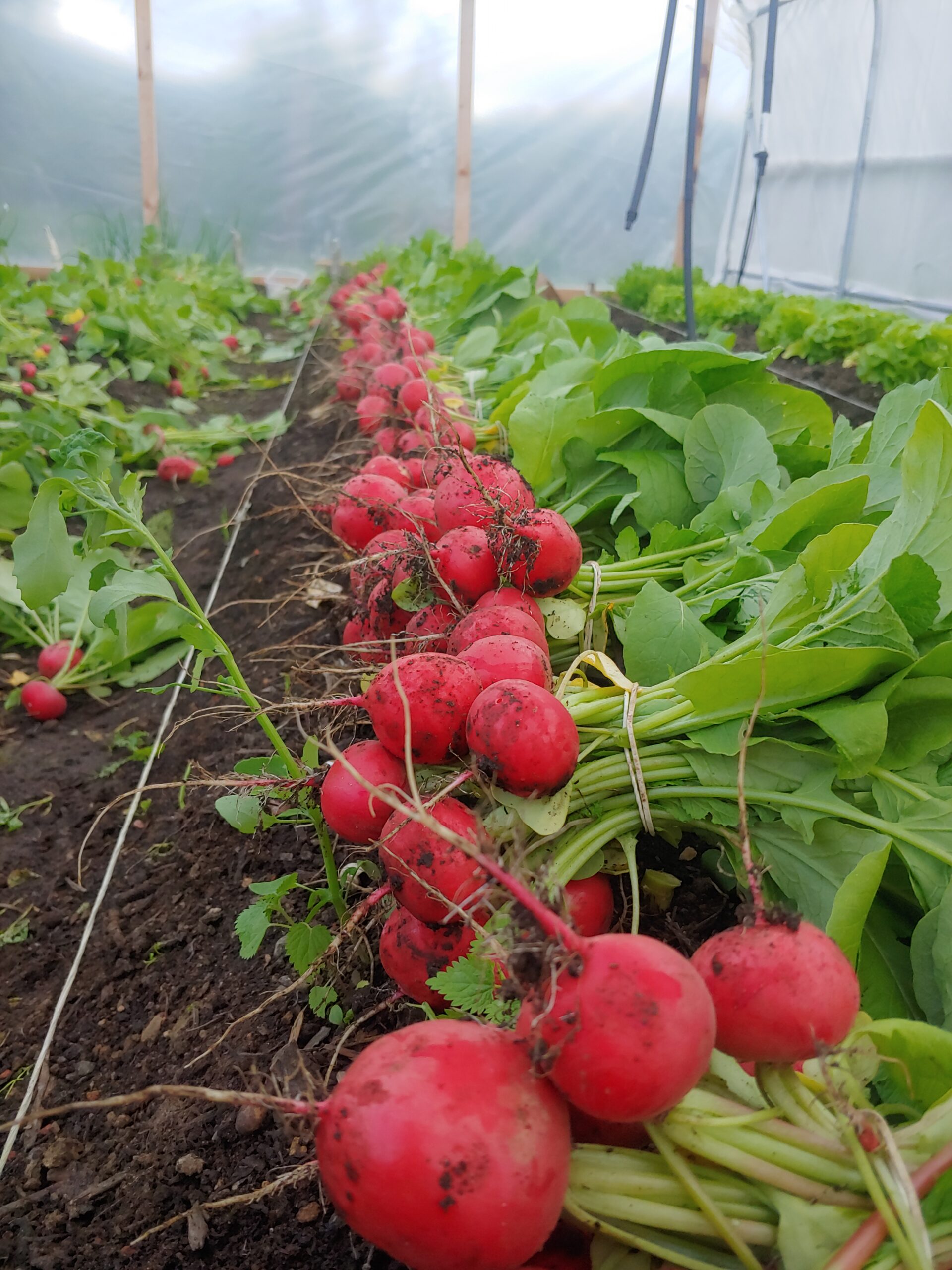 V květnu se můžete těšit na různé druhy salátů, kedlubny, špenát, ředkvičky, jarní cibulku, rukolu, asijskou zeleninu. V červnu do tašek zařadíme hrášek, zelí, kapustu toskánskou i hlávkovou, mrkev, česnekové výhonky, květák a čerstvé bylinky.